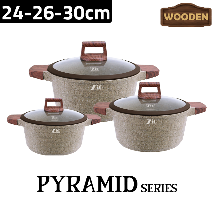 سرویس قابلمه ۶ پارچه گرانیتی آجری ضیا طرح پیرامید مدل ZCS_8546.30