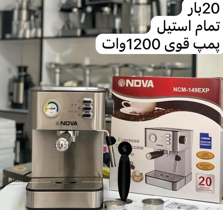 دستگاه اسپرسو ساز ندوا NCM-149EXP با توان 1200 وات و فشار بخار 20 بار، مجهز به نشانگر فشار پمپ، سیستم قطعکن دستی و نازل تولید بخار و آب جوش است که از آن برای تهیه کاپوچینو و کف شیر و انواع نوشیدنیهای گرم استفاده میشود. در اسپرسوساز ندوا مدل 149 نازل بخار قابل چرخش طراحی شده است. اسپرسو ساز ندوا NCM-149EXP آب جوش را با فشار خیلی زیاد از بین دانههای قهوهٔ آسیاب شده ریز میگذراند و قهوه اسپرسو غلیظتر از قهوههای دیگر را خارج میکند و میتوانید نوش جان کنید. در این دستگاه از بویلر و پمپ آب قویتری استفاده شده است که بر روی درجه حرارت قهوه خروجی و همچنین بخار آب تاثیرگذار است. اسپرسو ساز ندوا NCM-149EXP مناسب مصارف خانگی و یا کافهها