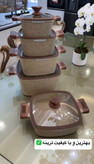این سرویس شامل قابلمه به سایز های 20.24.28.32 سانتی متر و یک عدد ماهیتابه در سایز 28سانتی مترو تمامی