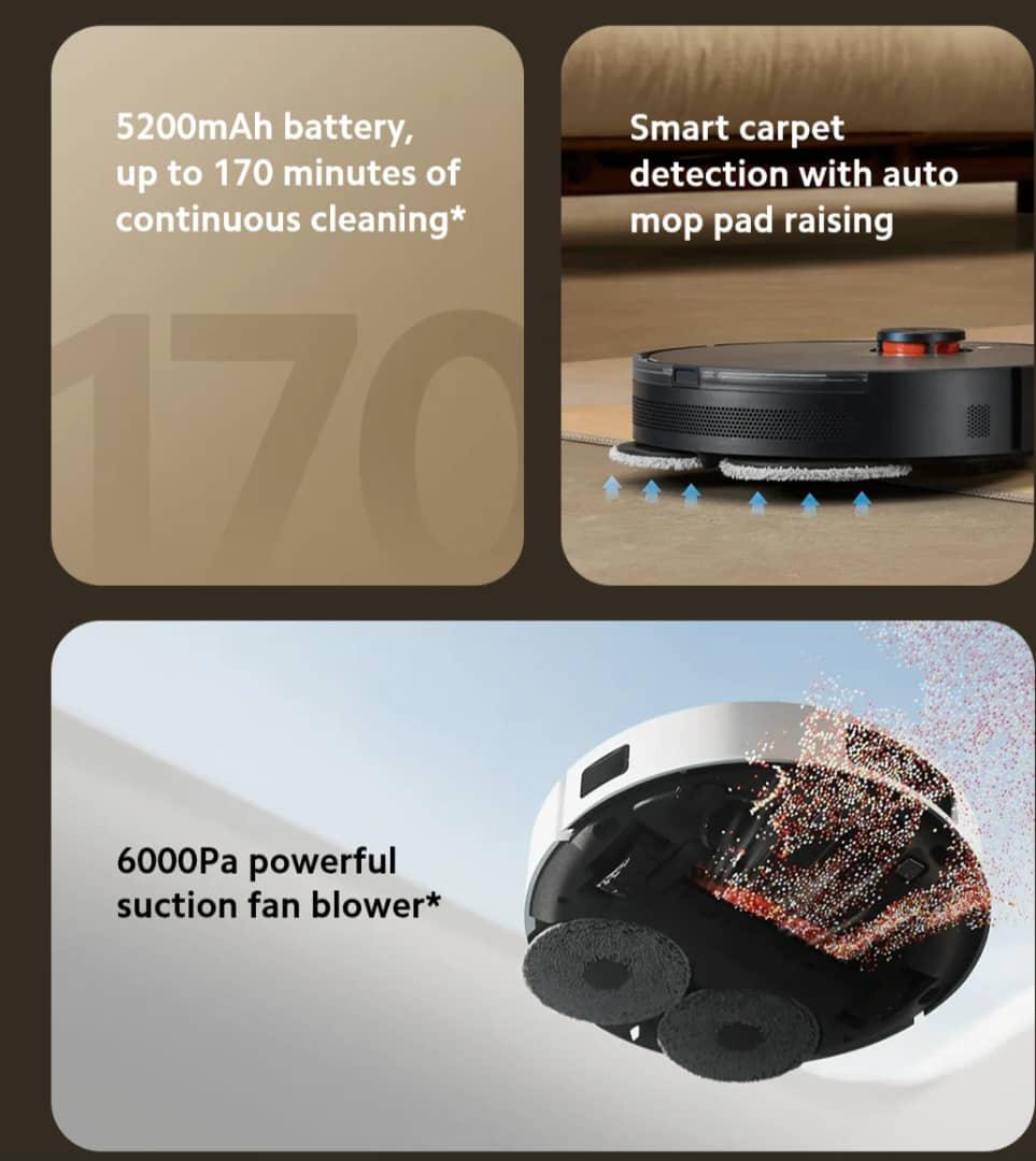 جارو رباتیک شیائومی مدل S20 Plus دارای قدرت مکش 6000 پاسکال می باشد.