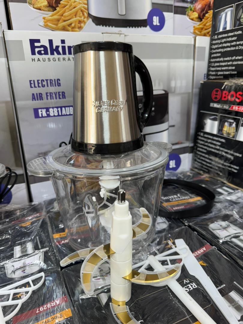 خردکن سیلور کرست مدل SL-2024 با ظرفیت ۳.۵ لیتر و موتور قدرتمند ۳۰۰۰ وات. مجهز به تیغههای تیتانیوم نقرهای، سه سرعت قابل تنظیم و طراحی مدرن. مناسب خرد کردن گوشت، سبزیجات و یخ با کارایی بالا و دوام طولانی.