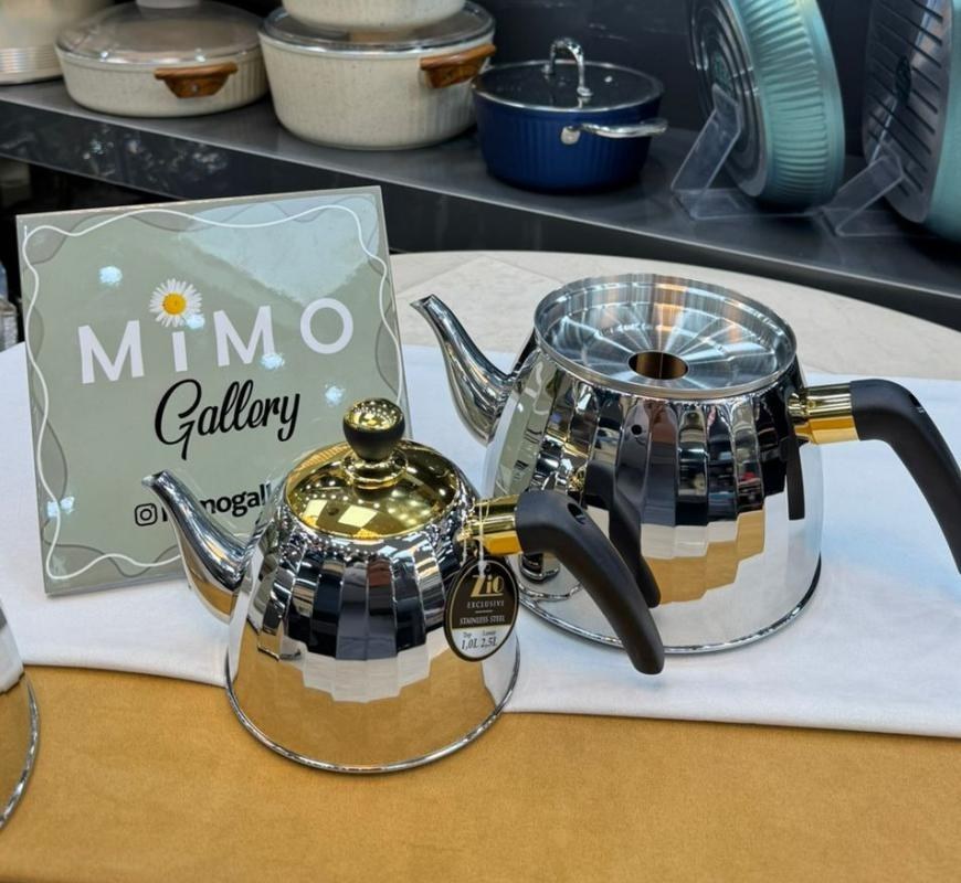 کتری قوری استیل زیو مدل 1857 کتری 2.5 لیتر قوری 2 لیتر کیفیت بسیار بالا و شیک اصل شرکت زیو کف چدن ساخت چین تحت لیسانس ترکیه